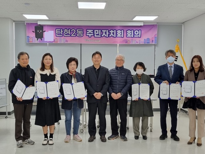 이종신 탄현2동장은 고양시장을 대신하여 위촉장을 전달하며 “주민자치회 위원이 된 것을 축하드린다. 앞으로 주민자치회가 자치사업을 재미나게 추진해 나가기를 응원한다.”며 축하의 말을 건넸다.