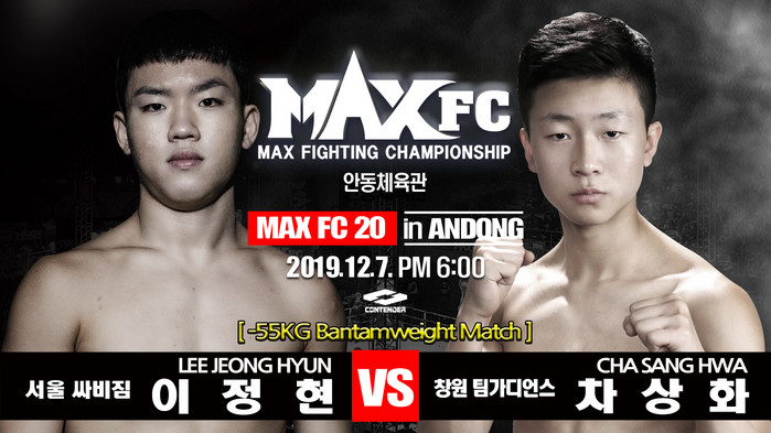 [부자동네타임즈 김인수기자] 'MAX FC 20 IN 안동'의 분위기를 달궈줄 첫 경기는 10대 무패 파이터들이 격돌한다. 12월 7일 경상북도 안동시 안동체육관에서 열리는 'MAX FC 20 in 안동'에서 이정현(18,서울 싸비MMA)과 차상화(19,창원 팀가디언스)가 밴텀급 경기를 펼친다.