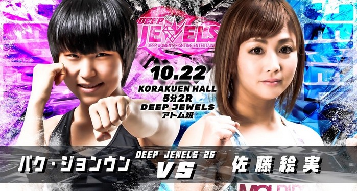 [부자동네타임즈 김인수기자] 박정은과 홍윤하는 22일 일본 도쿄 고쿠라엔 홀에서 열리는 DEEP JEWELS 26에 출전한다. 박정은은 사토 에미(38), 홍윤하는 수와난 분손(23)과 대결한다.