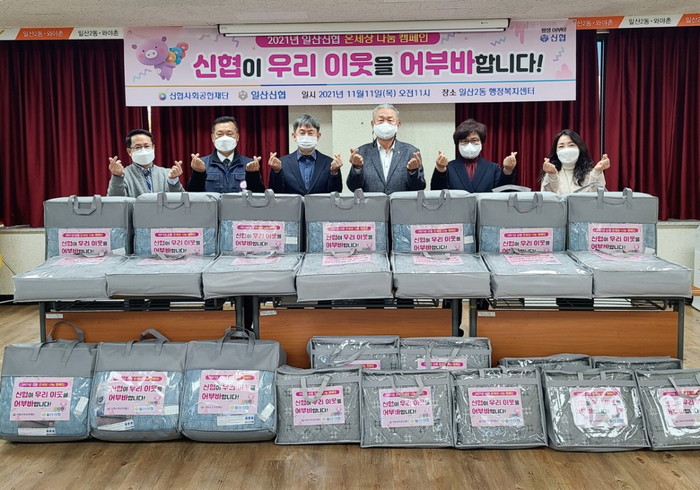 [부자동네타임즈 김인수기자] 고양시 일산2동 행정복지센터는 11일 일산신협으로부터 취약계층을 위한 고급이불 10채, 전기요 15채 모두 350만원 상당의 난방용품을 전달 받았다.
