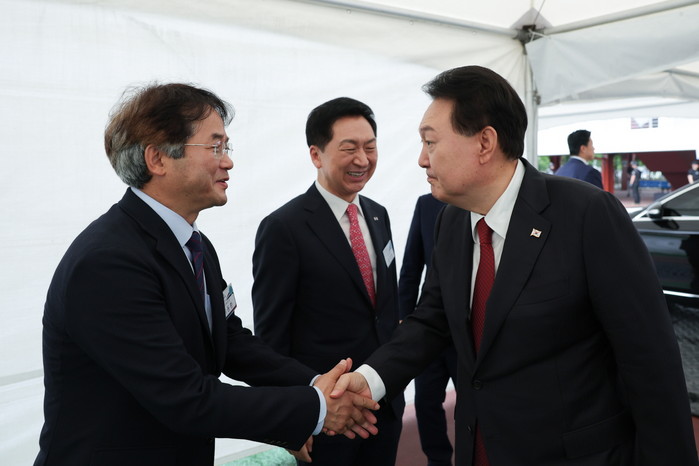 [사진설명] 이동환 고양특례시장이 윤석열 대통령을 맞이하고 있다.