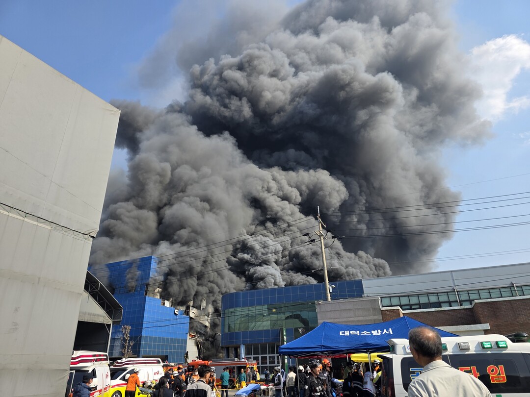 0일 오후 1시 17분께 대전 대덕구 문평동 한 자동차부품 제조 공장에서 불이 났다. 소방 당국은 신고 접수 9분 만에 대응 1단계, 14분 만에 대응 2단계를 발령한 데 이어 다수의 인명피해가 발생할 것을 우려해 오후 1시 53분을 기해 국가소방동원령을 발령했다. 오후 2시 30분 기준 약 50명이 다친 것으로 전해졌다. 2026.3.20