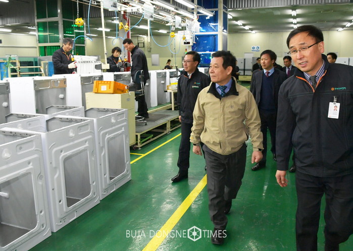 윤장현 광주광역시장이 산업현장의 목소리를 듣기 위해 23일 오후 광산구 하남산단 동부대우전자(주)를 방문, 기업관계자로부터 기업 현황을 듣고 생산현장을 둘러보며 근로자를 격려했다.