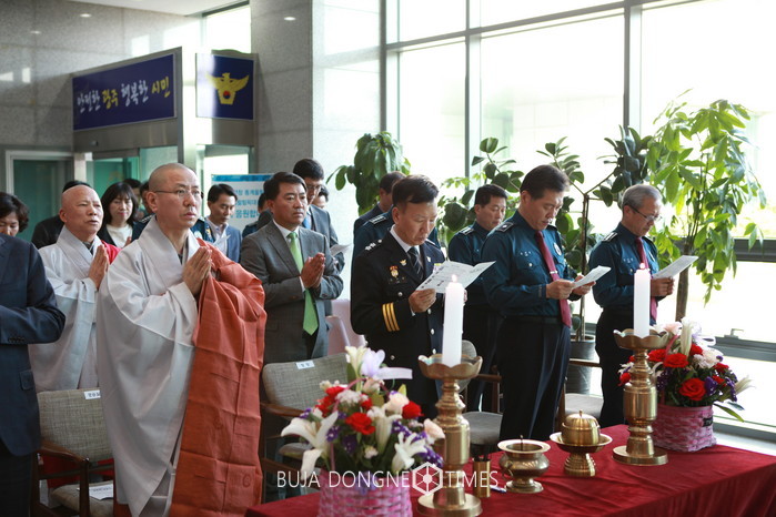 광주경찰청(청장 이기창)은 2017년 4월 19(수) 불기 2561년 '부처님 오신 날(5월3일-수)'을 앞두고 광주청 1층 로비에서 온세상에 부처님의 자비를 알리는 봉축등 점등식 행사를 가졌다.