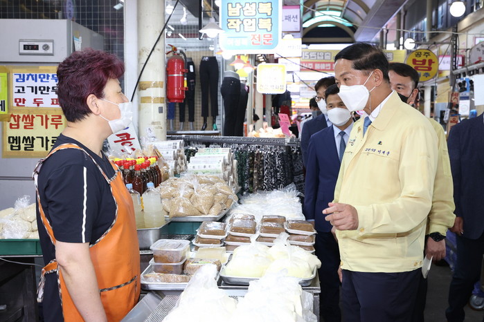 [부자동네타임즈 김인수기자] 이재준 고양시장이 추석 명절을 앞두고 전통시장을 찾아 코로나19로 지친 상인들을 격려하고 애로사항을 청취했다.