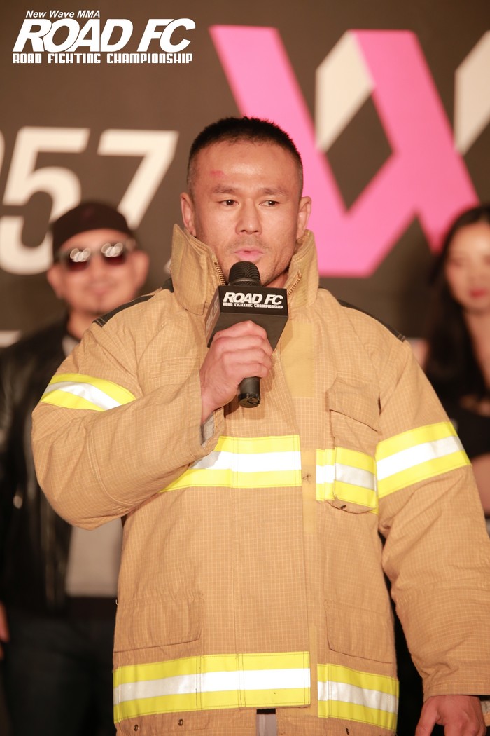 소방관 파이터도 시선을 사로잡았다. 현직 소방관인 신동국(38, 원주 로드짐)은 실제로 근무할 때 착용하는 복장을 입고 나왔다. 남의철과 치열하게 눈 싸움을 벌인 뒤 “커리어도, 실력도 부족한 저와의 시합을 수락해주신 남의철 선수께 감사드린다. 아직 남의철 선수에 비해 많이 부족하지만, 현장에서 인명을 구조하는 소방관의 마음으로 내일 케이지 위에서 최선을 다해 싸우고 내려오도록 하겠다. 화재 사고가 많아지는 겨울인데, 안전사고에 유의하셔서 국민 여러분들이 따뜻하고 안전한 겨울 보내시길 바란다.”고 말했다.