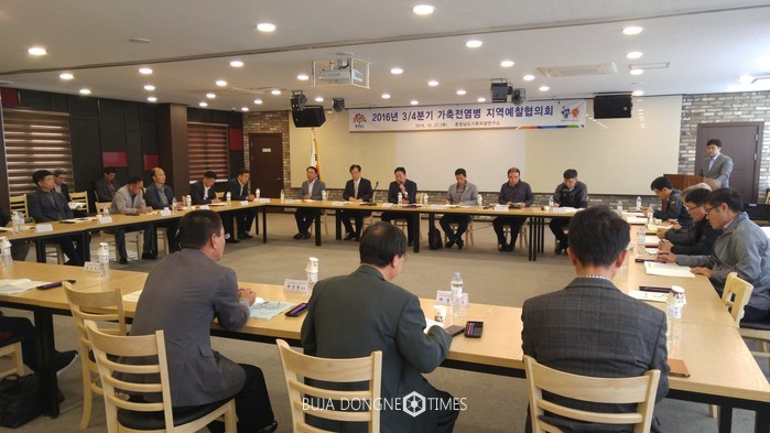 [충남=부자동네타임즈 이현석 기자] 충남가축위생연구소가 지난 27일 예산 소재 지돈가 회의실에서 시·군 축산과장과 충남수의사회장, 축종별 생산자 단체장 등 30명이 참석한 가운데 ‘3분기 가축전염병 지역예찰협의회’를 개최했다.