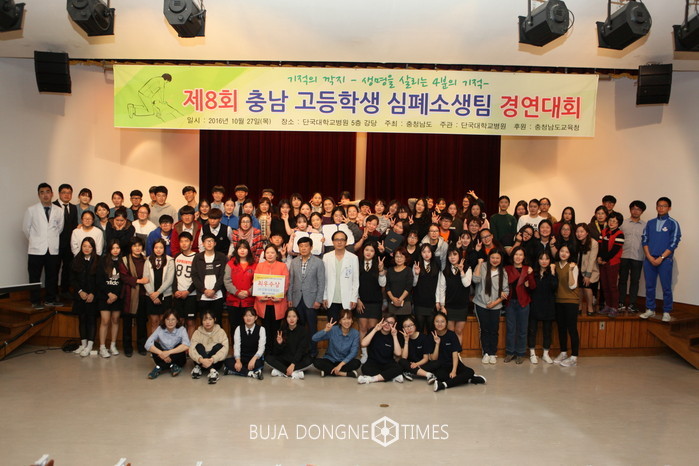 [충남=부자동네타임즈 이현석 기자]충남도가 주최하고 단국대학교병원이 주관하는 ‘제8회 고등학생 심폐소생팀 경연대회’가 27일 단국대병원에서 열렸다.