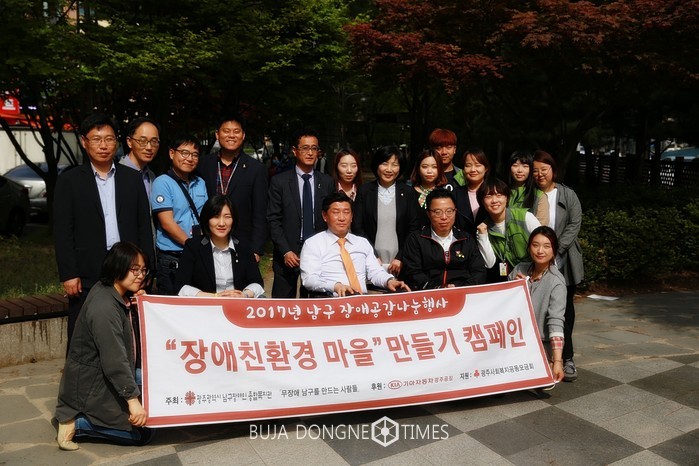 | △ 광주 남구의회 의원들과 직원들이 장애인 인식 캠페인 및 장애체험 시간을 가졌다 |