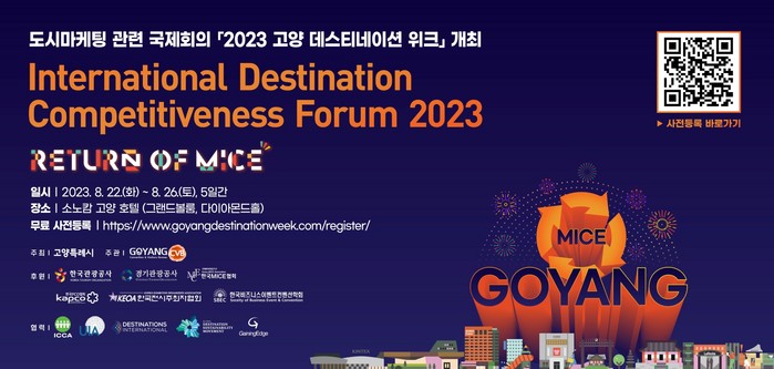 특히 올해는 100여개국 1천여개의 회원사를 보유하고 있는 국제컨벤션협회(ICCA)의 대표이사 센틸 고피나스(Senthil Gopinath)가 고양시를 방문할 예정이어서 이번 ‘고양 데스티네이션 위크’에 큰 관심이 쏠리고 있다.