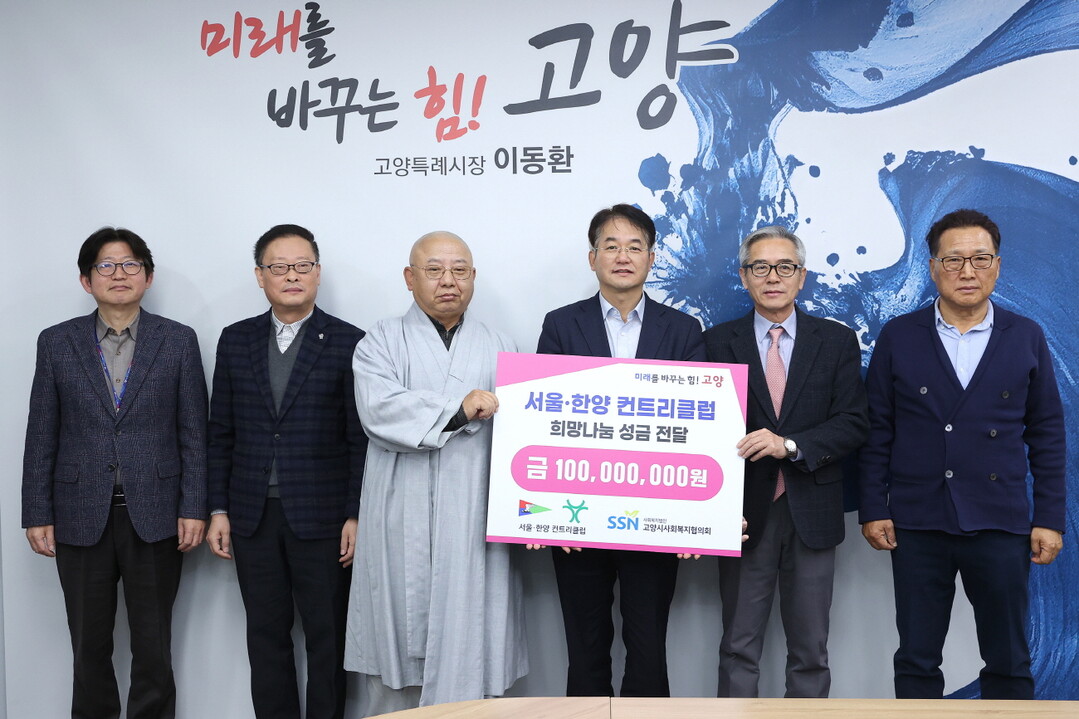 지난 19일 고양시청 열린시장실에서 열린 성금 전달식에는 박용식 한양컨트리클럽 대표이사, 고양시사회복지협의회 수석부회장 및 시관계자들이 함께했다.