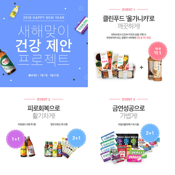 이번 행사는 건강을 해치는 주범인 ‘고칼로리/고지방 식사’, ‘피로’, ‘흡연’을 줄여 줄 수 있는상품을 대상으로 한, 연관상품 증정, 1+1, 2+1의 프로모션 행사를 1월 31일(수)까지 한달 간 진행한다.