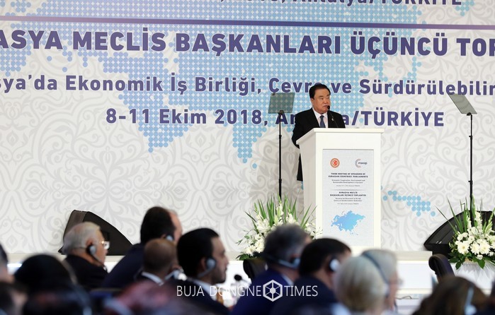 2016년 제1차 모스크바 회의, 2017년 제2차 서울 회의에 이어 <제3차 유라시아 국회의장회의>를 아름답고 유서깊은 지중해 연안도시인이 곳 안탈리아에서 터키 국회 및 러시아 하원과 공동으로 개최하게 된 것을 매우 기쁘고 영광스럽게 생각합니다.