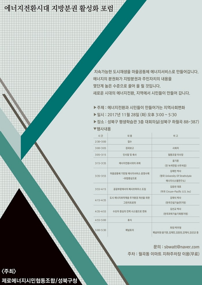 주민과 마을공동체가 주도해 에너지자립 방안을 모색하고 그것을 삶에 실현하는 에너지전환시대로 접어든 만큼 성북구도 이번 출범식에 거는 기대가 크다.
