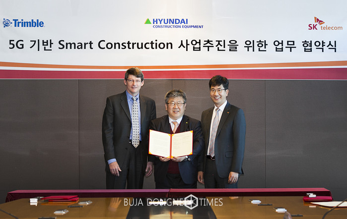 [부자동네타임즈 이채봉 기자]SK텔레콤(대표이사 사장 박정호, )은 현대건설기계(대표이사 공기영, ), 트림블(Trimble, 대표이사 스티븐 W. 베르글룬드, )社와 ‘5G 스마트 건설 솔루션’ 개발 및 사업 추진을 위한 업무협약을 체결했다고 10일 밝혔다.