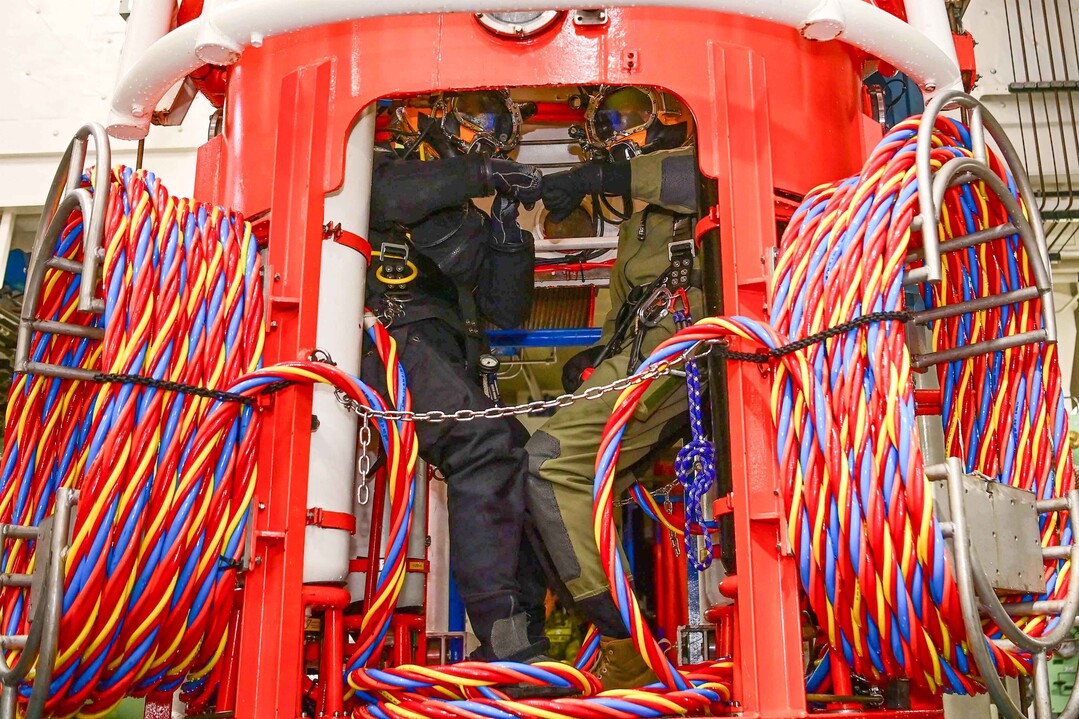 [부자동네타임즈 = 조영재 기자] 8일 경남 진해만 일대에서 진행된 연합 구조전 훈련에서 수상함구조함 통영함에 편승한 한국ㆍ호주 해군 잠수사들이 수중탐사장비에 탑승해 훈련 임무 완수를 다짐하고 있다. 2026.4.9 [해군 제공]