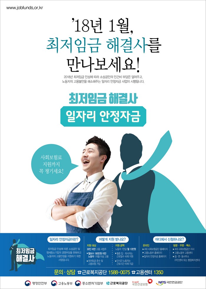 하지만 최저임금 인상에 따라 해고위험에 노출될 수 있는 공동주택 경비원 및 청소원에 대해서는 예외적으로 30인 이상 사업주도 지원받을 수 있다.
