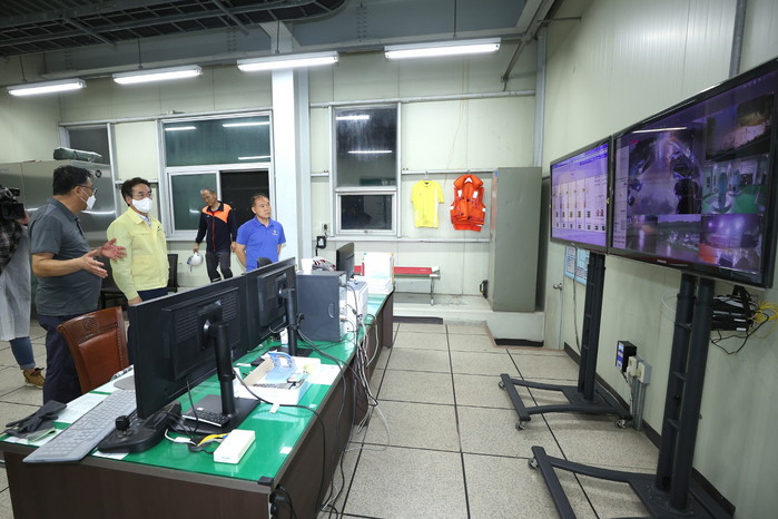 [사진설명] 강매배수펌프장 운영상황을 확인하는 이동환 고양특례시장.