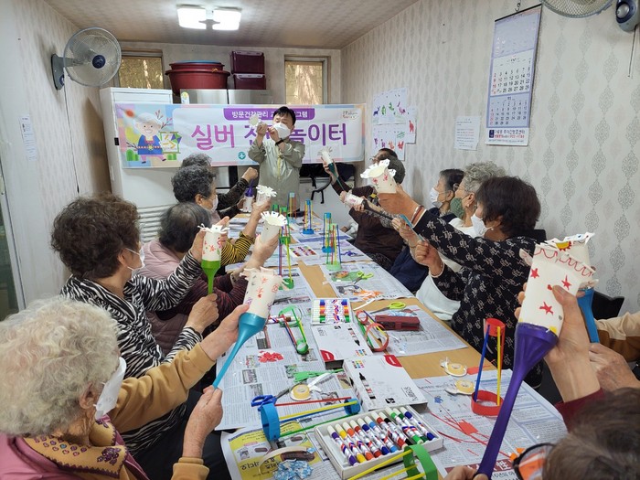 실버 전래놀이터는 방문건강관리사업 등록 어르신을 대상으로 운영되는 소근육 및 인지개선 프로그램이다. 프로그램은 탄현마을 7단지 경로당에서 9월부터 시작해 11월 중순까지 매주 1회 진행되고 있다.