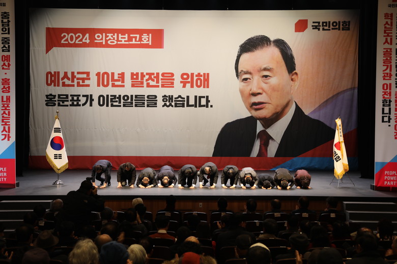 최성룡기자 = 국민의힘 홍문표 국회의원(충남 홍성·예산)은 지난 8일 1,500여명 주민들이 대성황을 이룬 홍성군 의정보고회에 이어 10일 예산군 문예회관 대강당에서 1천여명의 예산군 주민들이 참석한 가운데 의정보고회를 가졌다.