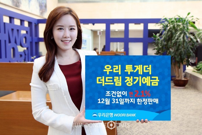 우리투게더 더드림 정기예금은 개인만 가입할 수 있고, 별도의 우대조건 없이 만기까지만 유지하면 연 2.1%의 금리를 제공한다. 가입금액은 최소1백만원, 최대1억원이며, 저축기간은 1년이다. 특판 상품은 12월 말까지 영업점에서 판매되며, 5,000억원 한도 소진시 판매 종료된다.
