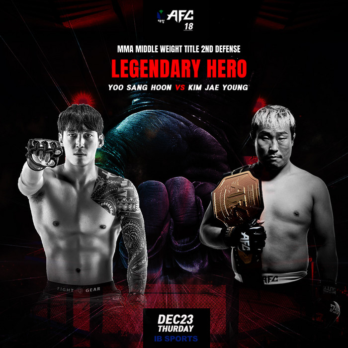 [부자동네타임즈 김인수기자] 엔젤스파이팅챔피언십(AFC)는 오는 23일 김재영(38, 노바MMA)과 유상훈(31, 팀매드)의 미들급 타이틀전을 메인이벤트로 하는 대양 AFC 18을 서울 신도림 테크노마트에서 연다고 선언했다.