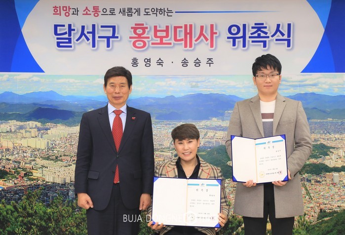 이태훈 달서구청장은 “새로운 30년을 향한 희망의 출발선에서 일상 속에서 주변 이웃들과 함께 가장 가까이 호흡하고, 소통할 수 있는 홍보대사 두 분의 왕성한 활동을 기대한다.”고 말했다.