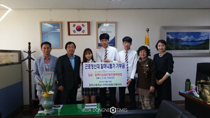 장덕고 교직원들이 기증한 물품으로 바자회를 개최하여 판매 수익 전액(일백십삼만팔백원)과 본교 CSI 동아리 후원금(팔만칠천원)을 합하여 총 일백이십일만칠천팔백원(1,217,800원)을 '근로정신대 할머니와 함께하기 시민모임'에 전달하였다.