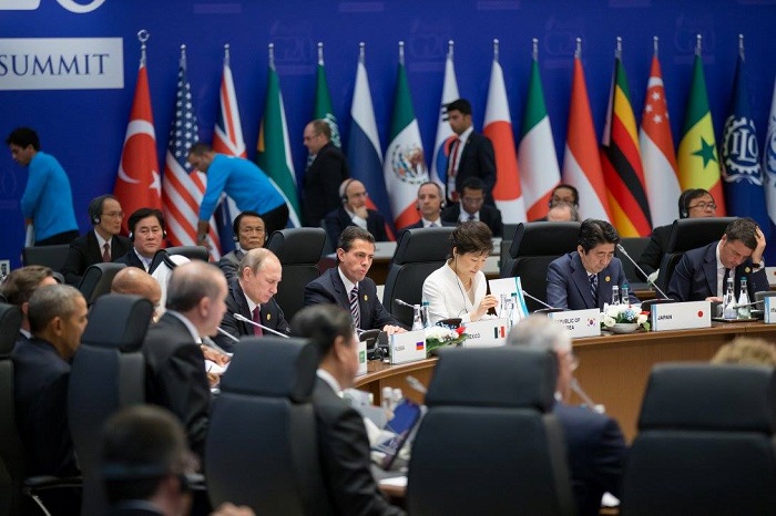 박근혜 대통령은 16일 오전(현지시각)부터 시작된 G20 정상회의 제2세션에서 세계경제의 회복력(resilience) 강화 방안에 대해 6번째로 발언했다.