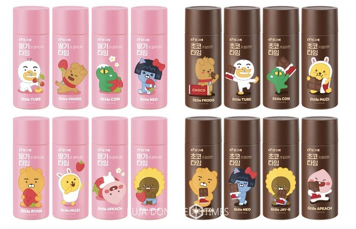 [부자동네타임즈 김현정 기자]빙그레가 카카오프렌즈를 패키지 디자인으로 활용한 가공유 ‘밀크 타임’ 2종을 출시했다고 밝혔다.