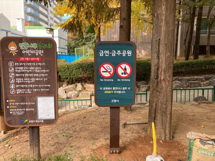 [사진설명] 어린이 공원에 금주구역 안내판이 설치되어 있다.