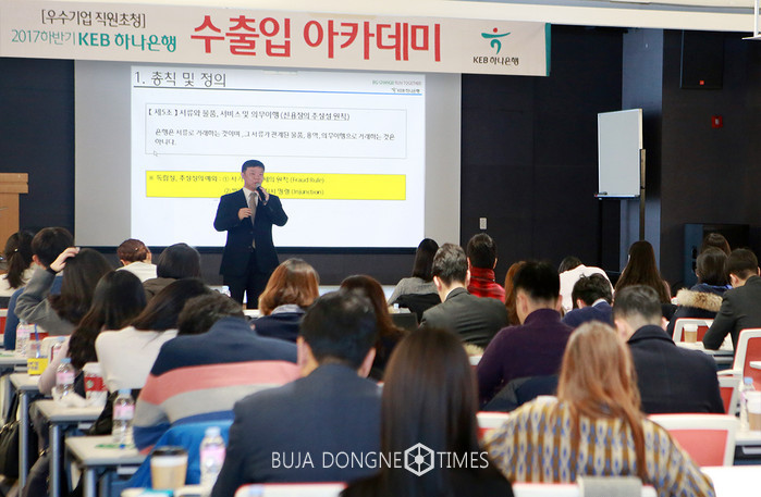 [부자동네타임즈 이현재 기자]KEB하나은행은지난 23일 을지로 본점에서 거래 중소기업의 임직원을 초청해 수출입업무 지원 강화를 위한 『2017년 하반기 KEB하나은행 수출입 아카데미』를 개최했다고 24일 밝혔다.