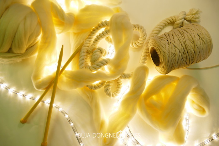 <빛을 엮는 기술>은 라이트나 LED 스트립을 뜨개, 매듭, 직조로 연결하거나 감싸는 등 섬유공예와 전기 기술이 접목된 메이커스 프로그램으로, ‘빛을 뜨다(뜨개편)’, ‘빛을 묶다(매듭편)’. ‘빛을 짜다(직조편)’로 구성된다.