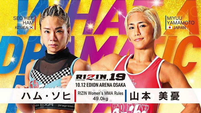 함서희는 지난 7월 RIZIN FF 17 대회에 출전했다. ROAD FC 대회에 출전하기도 했던 마에사와 토모를 니킥으로 제압, 4연승을 이어갔다. 2017년부터 4연승을 질주 최강의 퍼포먼스를 보여주고 있는 함서희는 야마모토 미유와 대결한다.