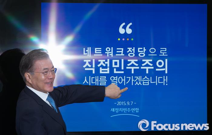 | △ 문재인 새정치민주연합 대표가 지난달 7일 오전 서울 여의도 국회에서 열린 네트워크 플랫폼 제작발표회에 참석해 취재진을 향해 포즈를 취하고 있다. 박동욱 기자 fufus@focus.kr |
