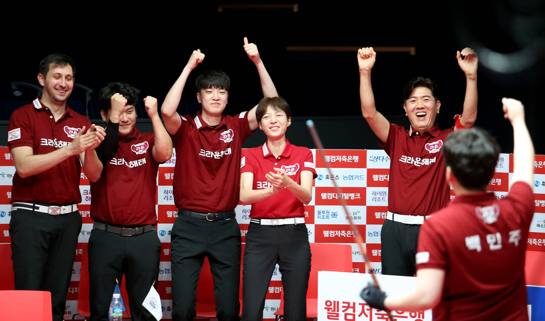 그러나 3세트에 나선 ‘팀 리더’ 조재호가 무랏 나시 초클루(튀르키예)를 15:9(8이닝)으로 꺾으면서 분위기를 뒤집었고, 오성욱-김보미가 초클루-김가영을 단 4이닝만에 9:8, 5세트서는 안토니오 몬테스(스페인)가 응우옌을 11:10(9이닝) 승리하면서 경기를 뒤집었다. 6세트서 김민아가 사카이 아야코(일본)에 3:9(5이닝) 한 세트 내줬으나 마지막 세트서 마 민 캄(베트남)이 김병호를 11:7(5이닝) 물리치면서 6연승을 완성했다.