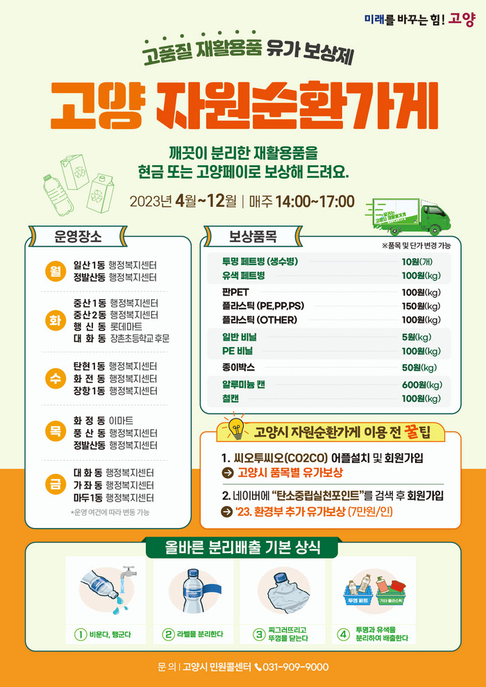 한편 고양시는 재활용품 전용수거봉투 보급, 투명페트병 교환사업, 등 재활용을 촉진하는 다양한 사업을 진행하고 있다.