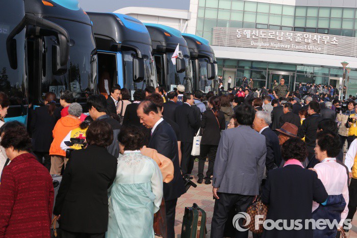 △ 20일 오전 강원도 고성 동해선도로남북출입사무소 앞에서 이산가족 상봉단이 ‘제20차 이산가족상봉’을 위해 분주히 움직이고 있다. 강현선 기자 hyunseon@focus.kr |
