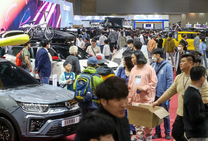 [사진설명] 경기도 고양시 킨텍스에서 열리고 있는 2023서울모빌리티쇼가 관람객들로 북적이고 있다.