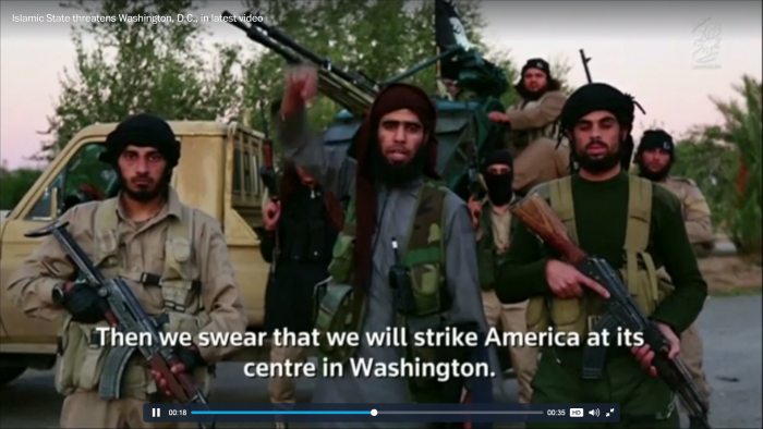 11분 가량의 짧은 동영상에서 한 IS 대원은 카메라를 향해 "신의 뜻에 따라 우리가 프랑스 파리를 공격했듯 미국 워싱턴도 공격당하게 될 것"이라고 미국을 향해 직접적인 위협을 가했다.