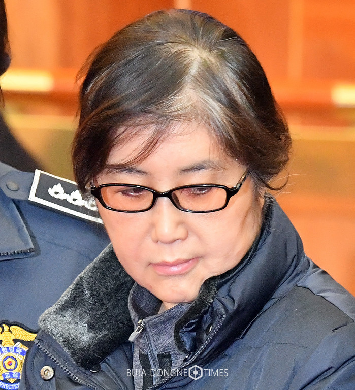 '비선실세' 최순실이 16일 오전 서울 종로구 헌법재판소에서 열린 박근혜 대통령 탄핵심판 5차 변론기일에 증인으로 출석하고 있다. 2017.01.16.