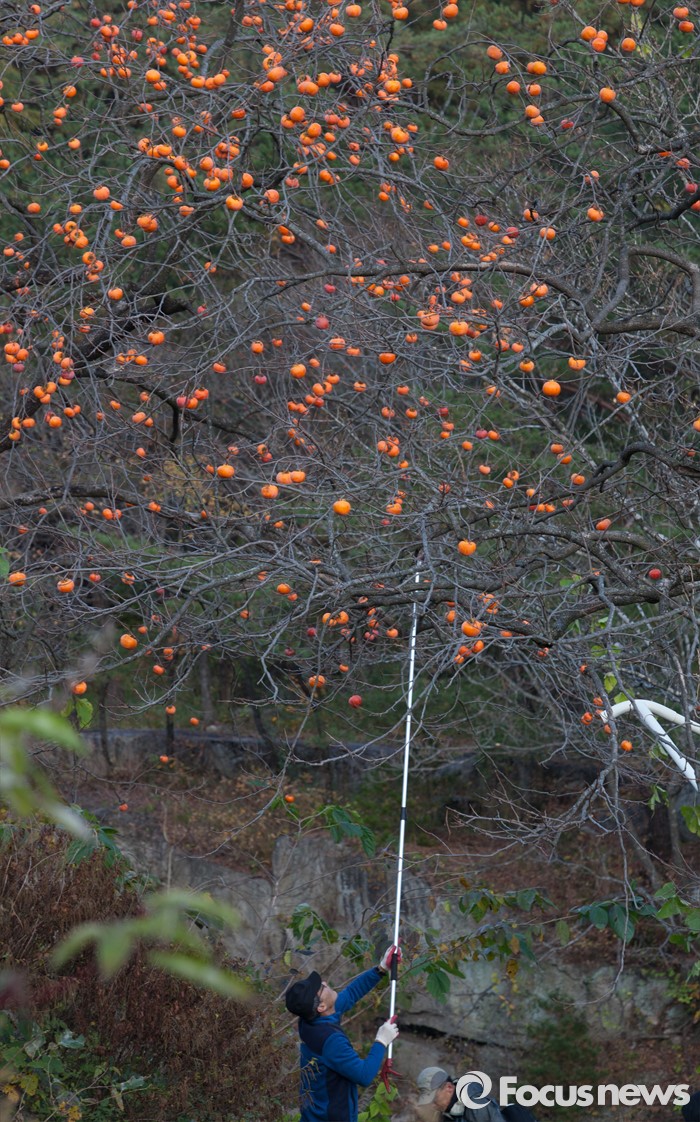 (강릉=포커스뉴스) 26일 오전 강원 강릉시 연곡면 삼산리 마을에 감이 붉게 타오르며 늦가을의 정취를 만발하고 있다.