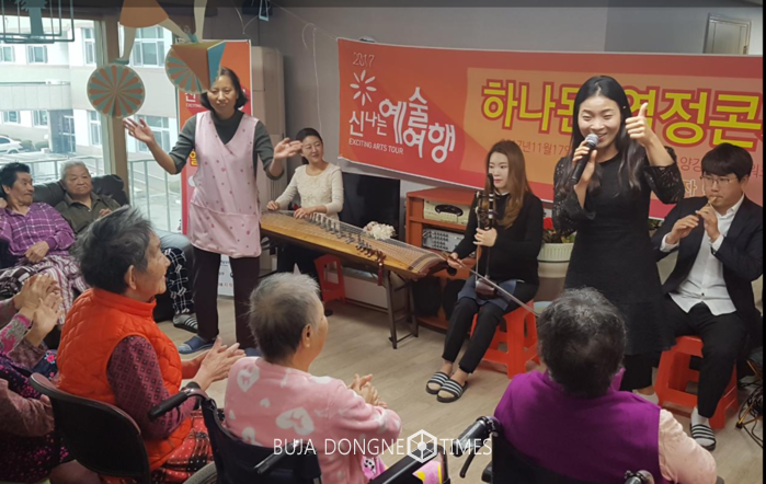 [부자동네타임즈 권태인 기자]국악창작그룹 자락이 ‘하나 된 열정콘서트’를 통해 문화 예술을 쉽게 접하기 어려운 시민과 어르신 복지시설 및 양로원 등을 직접 찾아가며 문화예술 향수 기회를 제공하고 있다.