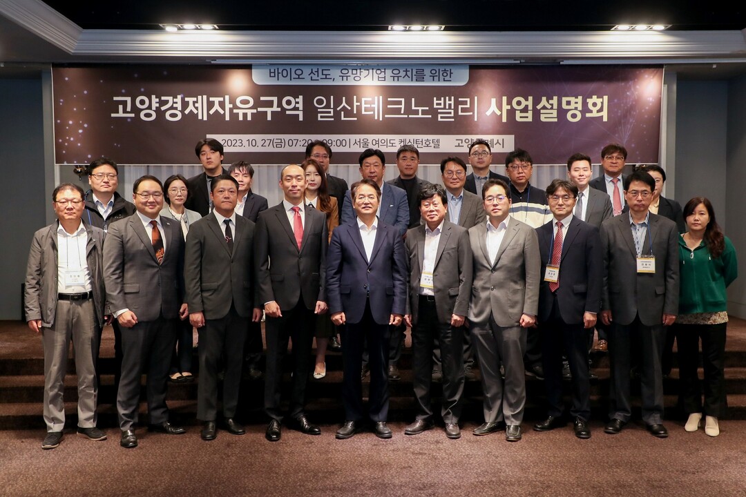 [부자동네타임즈 = 김인수 기자] 지난 27일 여의도 켄싱턴호텔에서 바이오 분야 유망, 선도 기업을 대상으로 고양경제자유구역(일산테크노밸리) 기업 유치를 위한 사업 설명회를 열었다.