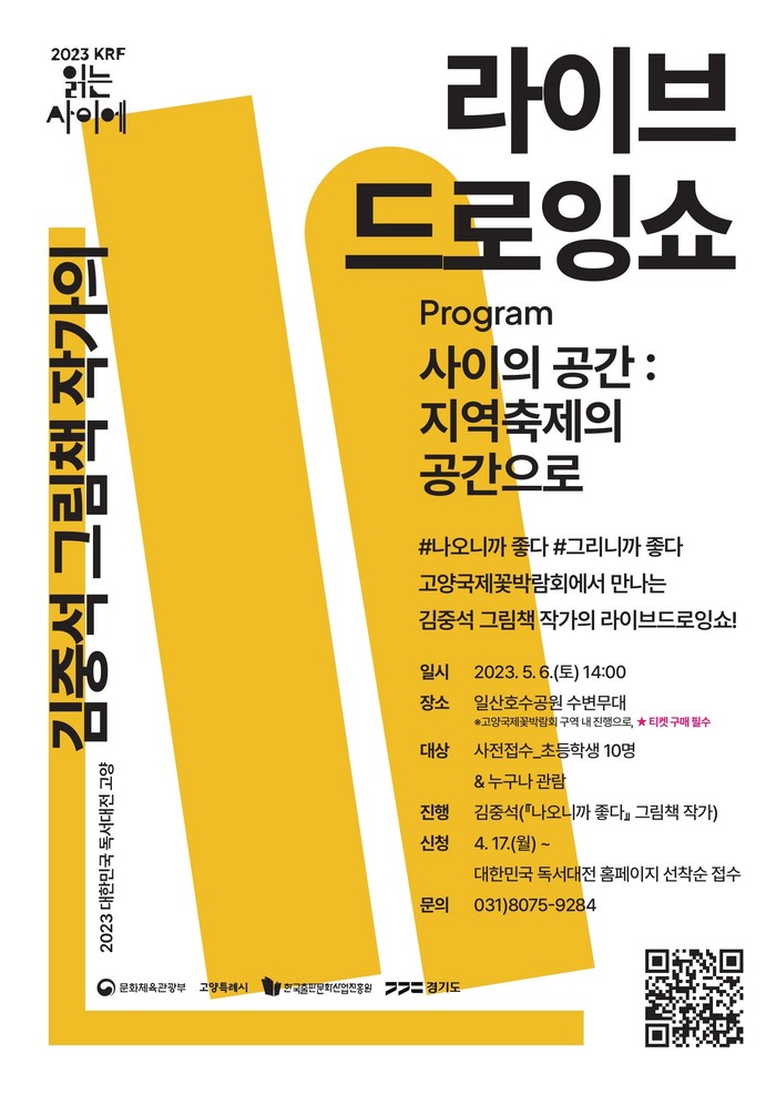 이번에는 코로나로 인해 4년 만에 열리는 고양시 대표 축제인 ‘2023 고양국제꽃박람회’와 협력으로 대한민국 독서대전을 미리 만나 볼 수 있는 특별한 프로그램을 운영한다.