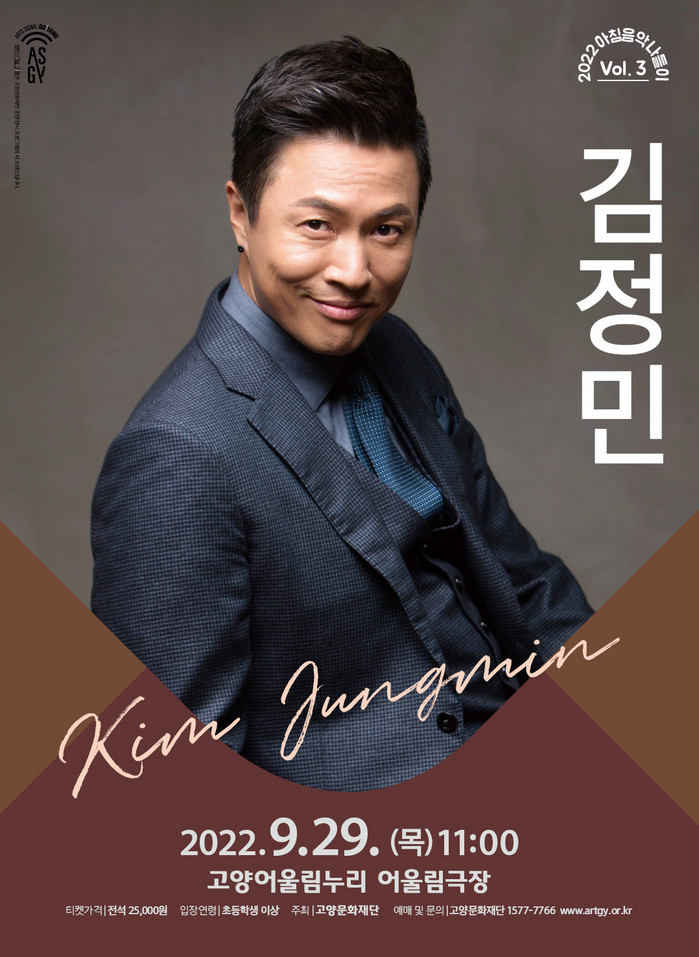 [부자동네타임즈 김인수기자] 고양문화재단(대표이사 정재왈)은 오는 9월 29일(목) 고양어울림누리 어울림극장에서 아침음악나들이 세 번째 프로그램으로 가수 김정민의 무대를 선보인다. 고양어울림누리 대표 아침 콘서트 시리즈인 ‘아침음악나들이’는 매년 다양한 장르에서 활약하고 있는 보컬리스트의 무대를 선보여 오고 있으며, 앞서 뮤지컬 배우 정영주(5월)와 포르테 디 콰트로의 멤버 가수 손태진(7월)의 무대로 관객들의 호평을 받았다. 이어 진행되는 김정민 콘서트 역시 가을에 어울리는 락발라드로 점점 서늘해져가는 아침공기를 뜨겁게 달궈 줄 예정이다.