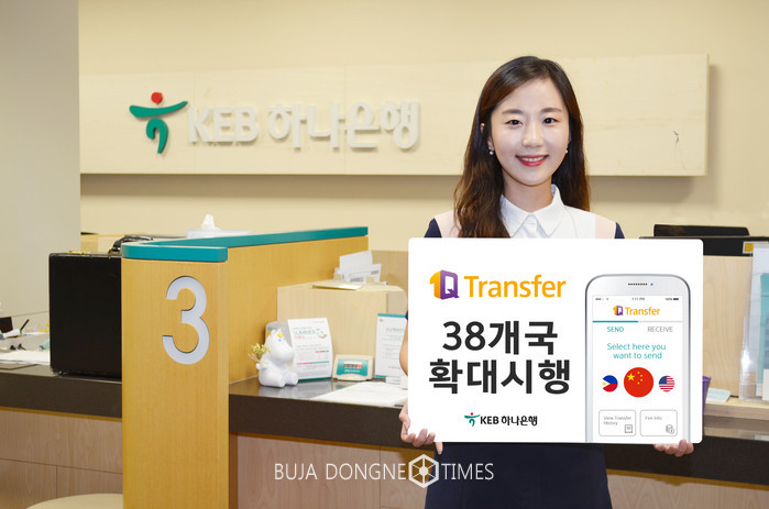 [부자동네타임즈 이현재 기자]KEB하나은행은 오는11일부터 수취인의 휴대폰번호를 이용해 언제 어디서나 휴대폰으로 해외송금, 수취가 가능한「1Q Transfer」의 서비스 지역이 총 38개 국가로 확대된다고 밝혔다.