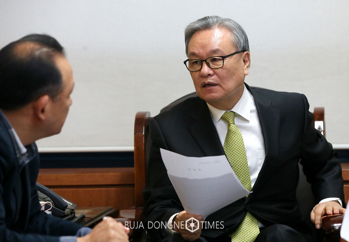 인명진 새누리당 비상대책위원장이 6일 오전 서울 여의도 새누리당 당사 비상대책위원장실에서 위임장을 들고 비서진과 이야기를 나누고 있다. 2017.01.06.