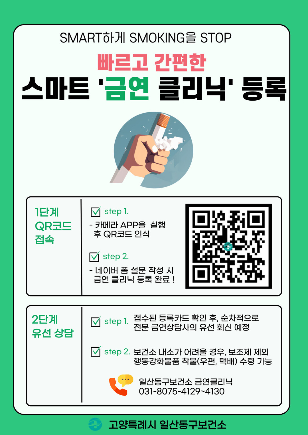 금연클리닉은 금연을 희망하는 성인과 청소년 누구나 대면 및 비대면으로 참여할 수 있다. 참여를 희망하는 지역주민들은 일산동구 금연클리닉(031-8075-4129~4130)으로 문의하면 된다.