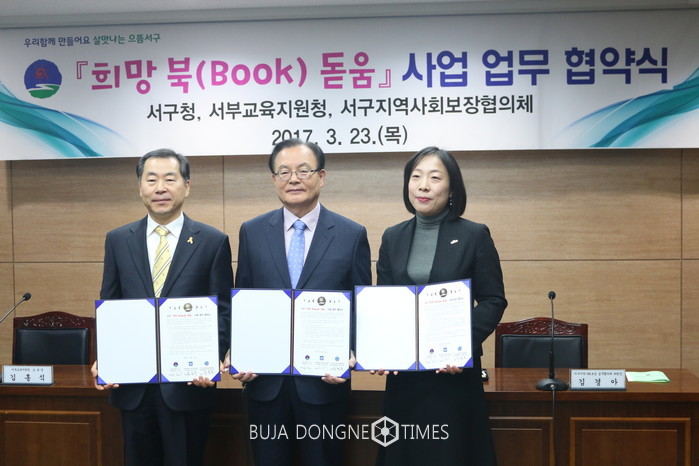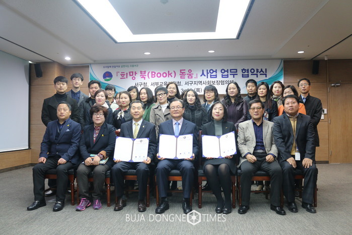 이번 업무협약은 책 읽기에 관심이 많은 서구관내 저소득층 아동과 청소년들에게 정기적으로 도서를 구입해 제공함으로써 학생들이 꿈과 희망을 키우고 발전할 수 있도록 돕기 위해 체결됐다.